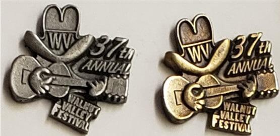 Official Limited Edition Hat/Lapel Pin from the 37th Annual Walnut Valley Festival in 2008. Available in Pewter finish only. While Supplies Last.